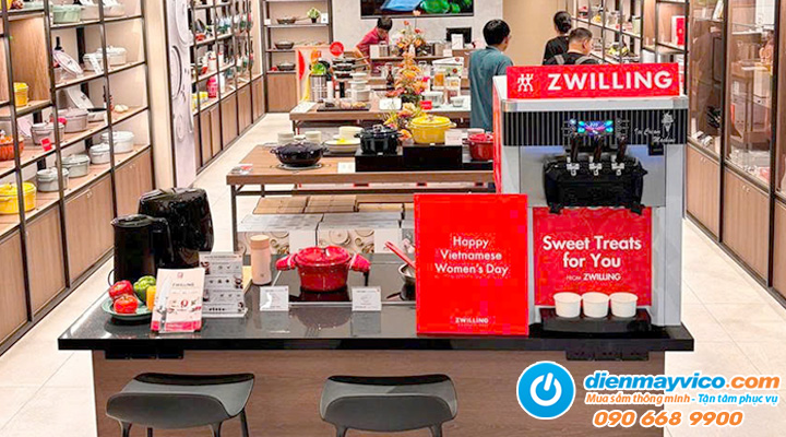 → Bên cạnh đó, máy làm kem tươi để bàn còn được trữ sẵn một số lượng kha khá máy cùng với các mẫu máy làm kem tươi 3 vòi có chân cao tại kho hàng cho thuê của Điện Máy Vi Co nhằm để sẵn sàng phục vụ cho mọi nhu cầu sử dụng của khách hàng. Đồng thời, các sản phẩm thuê còn được tân trang thường xuyên và kiểm tra định kỳ nhằm để giữ máy luôn ở trong tình trạng tốt và phục vụ hiệu quả cho mọi sự kiện/cửa hàng.