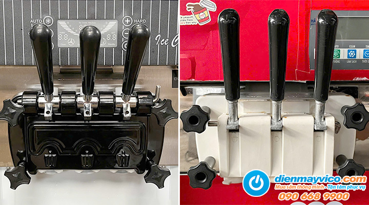 - Ngoài ra, máy còn được thiết kế với 3 vòi nhấn với tay cầm chắc chắn, trong đó 2 vòi riêng biệt cho phép tạo ra hai hương vị khác nhau và 1 vòi mix giúp kết hợp 2 vị kia thành vị thứ ba độc đáo, từ đó giúp phục vụ thực khách hiệu quả với nhiều lựa chọn đa dạng hơn.