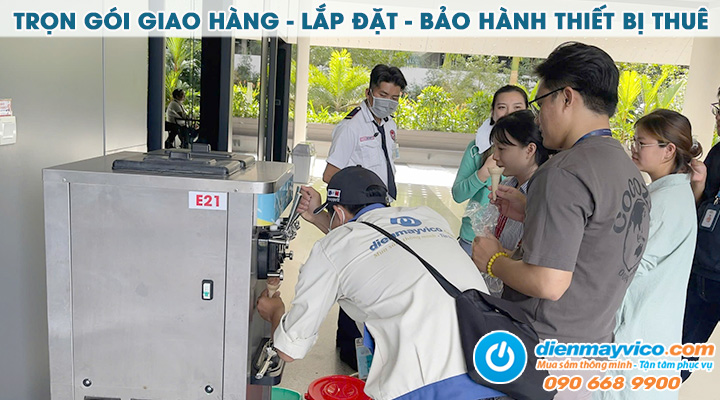 ◆Setup thiết bị thuê trọn gói với quy trình bài bản: Khi sử dụng dịch vụ cho thuê máy làm kem tại Điện Máy Vi Co, bạn sẽ được phục vụ đến một quy trình setup thiết bị trọn gói. Tiến hành chuẩn bị hàng hóa cho thuê kỹ càng, giao & lắp đặt thiết bị tận nơi – đúng hẹn – đúng yêu cầu, bàn giao – hướng dẫn chi tiết cách sử dụng và bảo quản máy làm kem đúng cách để đảm bảo đẩy kịp tiến độ sử dụng và giúp mang đến quá trình vận hành trơn tru hơn.