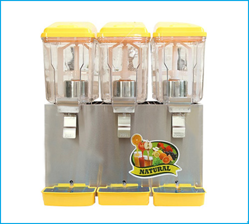 - Máy được thiết kế với gồm 3 hộc chứa được làm bằng nhựa trong và có nắp đậy tháo rời với mỗi hộc có dung tích 16 lít, nhằm giúp người dùng lưu trữ và trưng bày cùng lúc 3 loại nước giải khát để phục vụ cho khách hàng, cũng như tiện hơn cho việc quan sát nước bên trong và thu hút sự chú ý của thực khách.