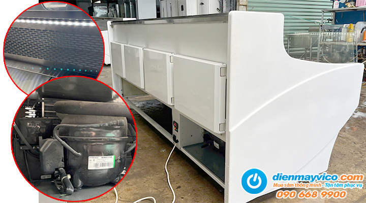 Đặc biệt hơn cả là tủ mát trưng bày không cửa 2m5 Docriluc được nhập mới về cho thuê và đồng thời còn được thường xuyên được tân trang và bảo trì – bảo dưỡng định kỳ tại kho, nên bạn hoàn toàn có thể yên tâm về chất lượng sản phẩm cả về mặt ngoại hình và hoạt động của tủ, đảm bảo mang đến quá trình vận hành trơn tru và hiệu quả.
