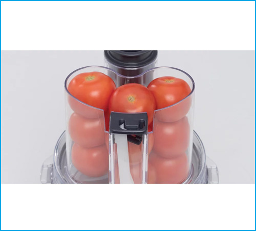 – Máy gọt rau củ quả Robot Coupe có phễu bán nguyệt XL giúp chứa được đến 6 quả cà chua cho 1 lần. Phễu hình trụ có đường kính Ø 58 mm được dùng để cắt các loại rau có độ dài và mỏng một cách nhanh và chính xác.