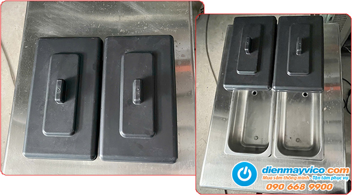 - Hộc đựng kem được làm bằng inox cao cấp và có nắp nhựa đậy kín để giúp đảm bảo an toàn vệ sinh an toàn thực phẩm. Thiết kế ngăn chứa có thể tháo rời khỏi máy để tiện cho việc sử dụng & vệ sinh máy khi cần.