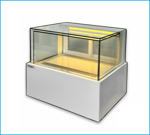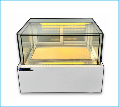 Tủ bánh kem để bàn kính vuông không viền Snow Village 0.9m