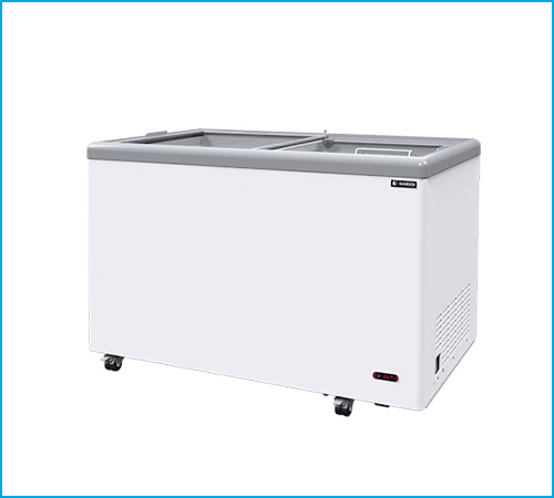 Tủ đông nằm với 2 cửa kính phẳng lùa ngang đóng/ mở tủ dễ dàng, phần kính được làm từ loại kính Low-E hạn chế tối ưu việc đọng sương và giúp quá trình trưng bày quan sát thực phẩm luôn rõ ràng, mang lại hiệu quả cao khi mua sắm lựa chọn tại các cửa hàng.