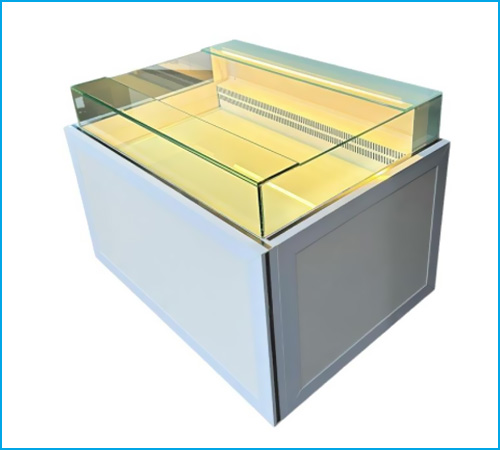 Bề mặt kính ốp xung quanh của tủ sử dụng loại kính siêu trong dày 10mm có khả năng chịu lực tốt, hạn chế trầy xước và va đập hiệu quả. Nhờ độ trong suốt cao, hàng hóa bên trong luôn được hiển thị nổi bật từ mọi góc độ, tạo cảm giác tươi mới và hấp dẫn, góp phần nâng cao giá trị trưng bày cho khu vực siêu thị hoặc cửa hàng.